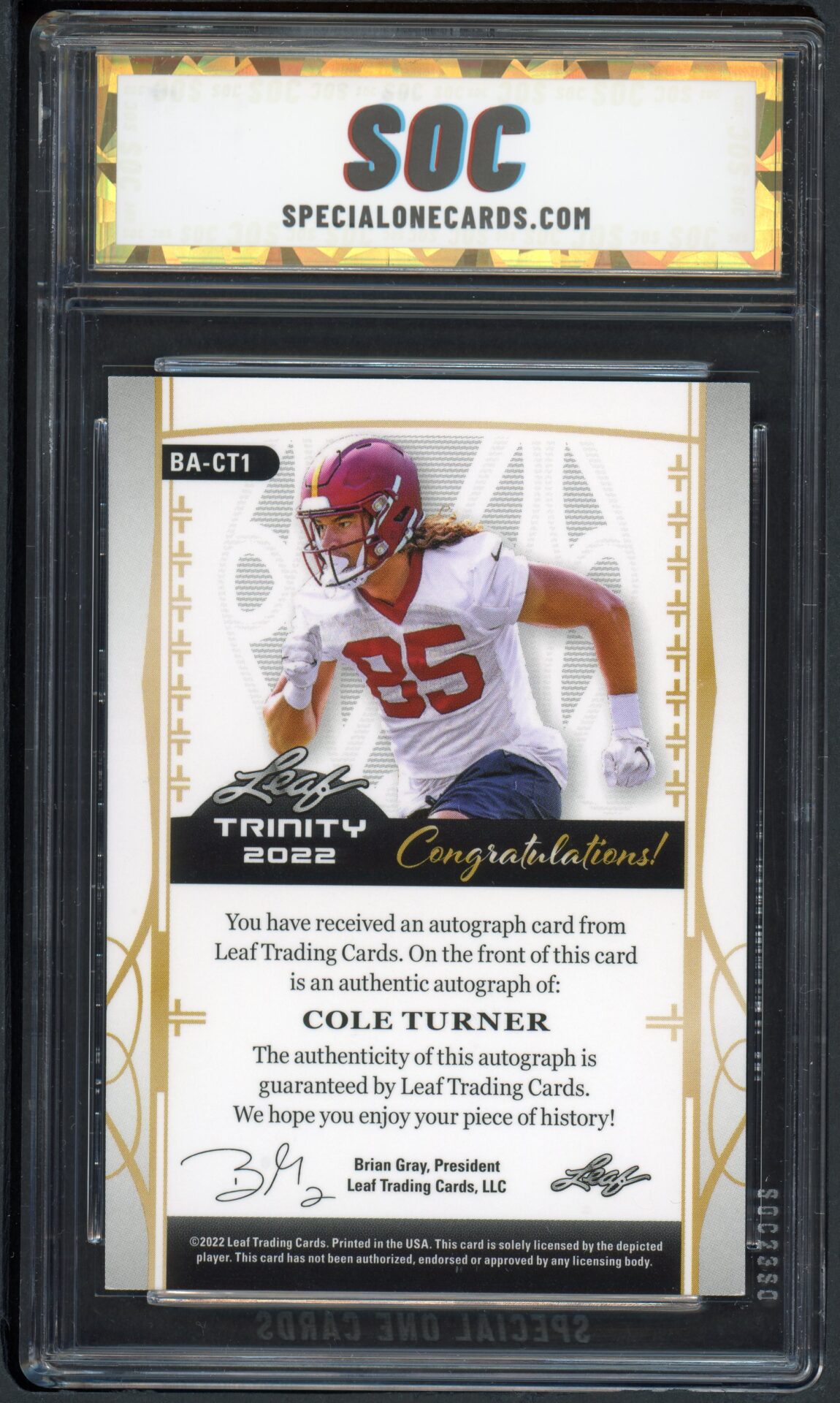 This card’s authenticity was verified by Special One Cards (SOC).