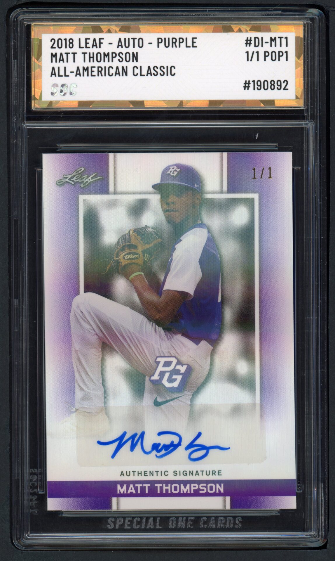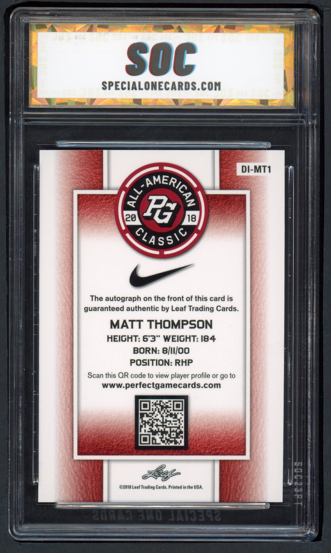 2018 LEAF #DI-MT1 MATT THOMPSON ALL-AMERICAN CLASSIC SOC POP1